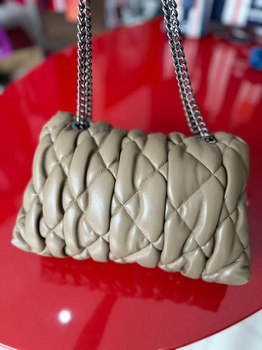 O acabamento acolchoado em matelassê proporciona um visual luxuoso, enquanto a alça de corrente adiciona charme e personalidade ao modelo. Com tamanho aproximado de 30 cm, oferece espaço ideal para seus itens essenciais sem perder a elegância.